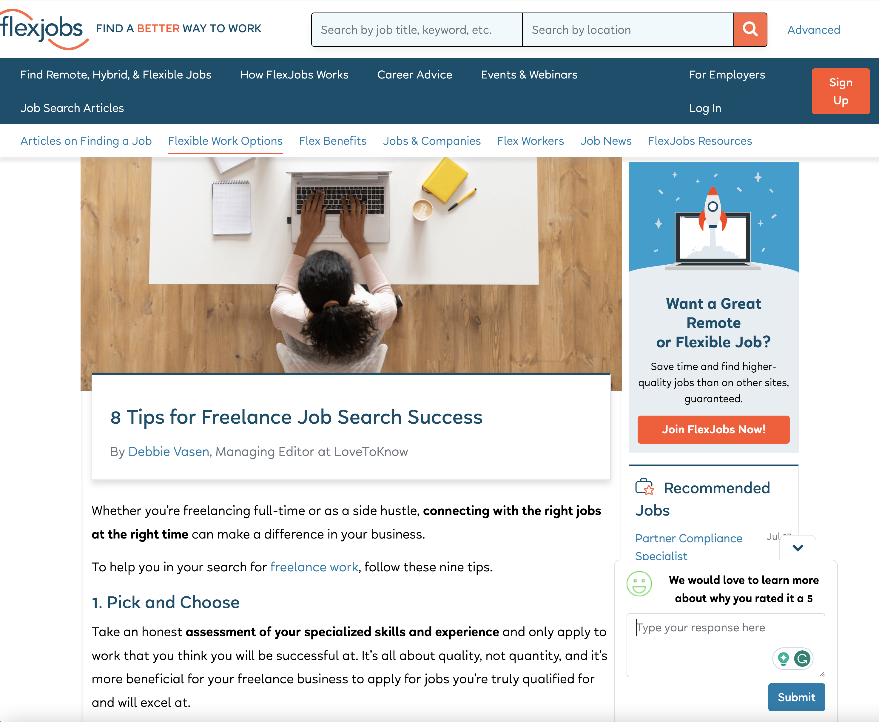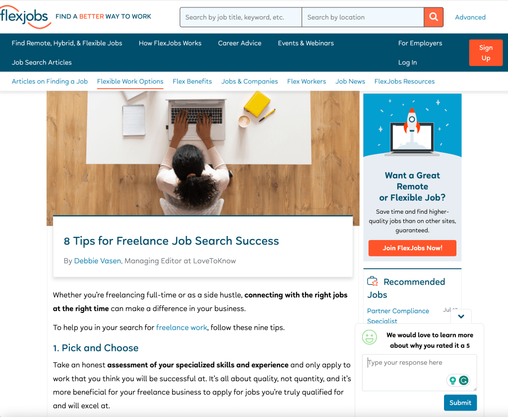 - FlexJobs: 8 Tips for Freelance Job Search Success